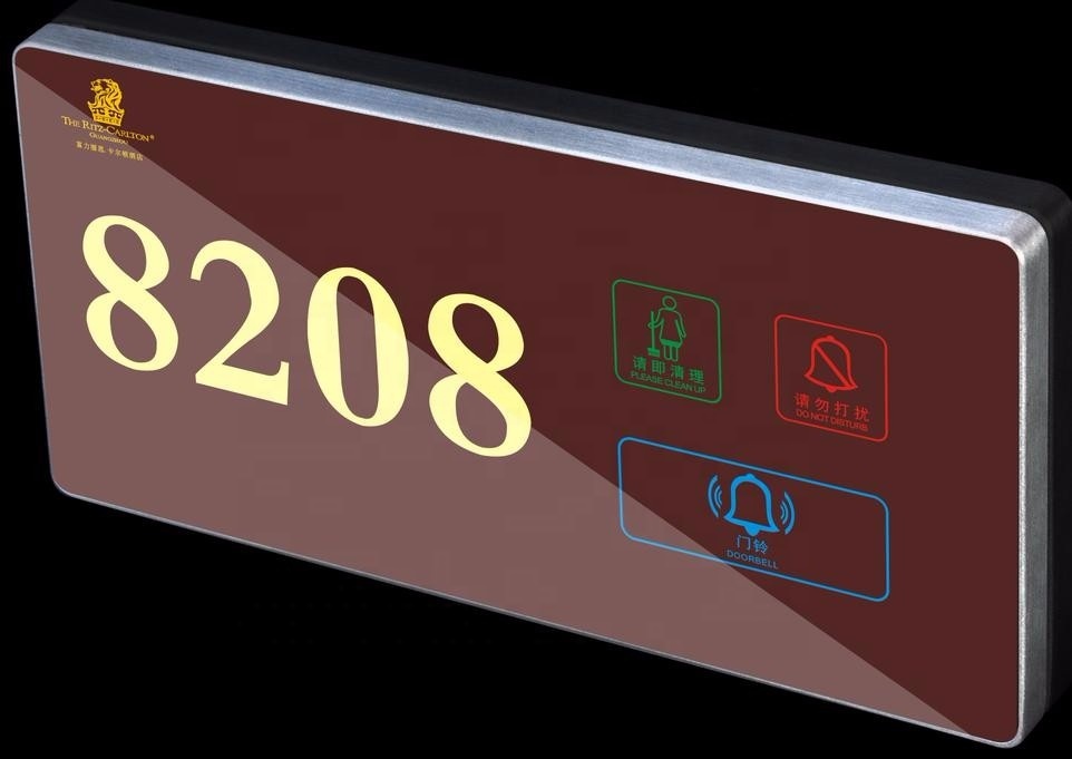 | Função: | Sinal do logotipo do hotel, número do quarto, não perturbe, sino | Tipo de tela: | LCD |