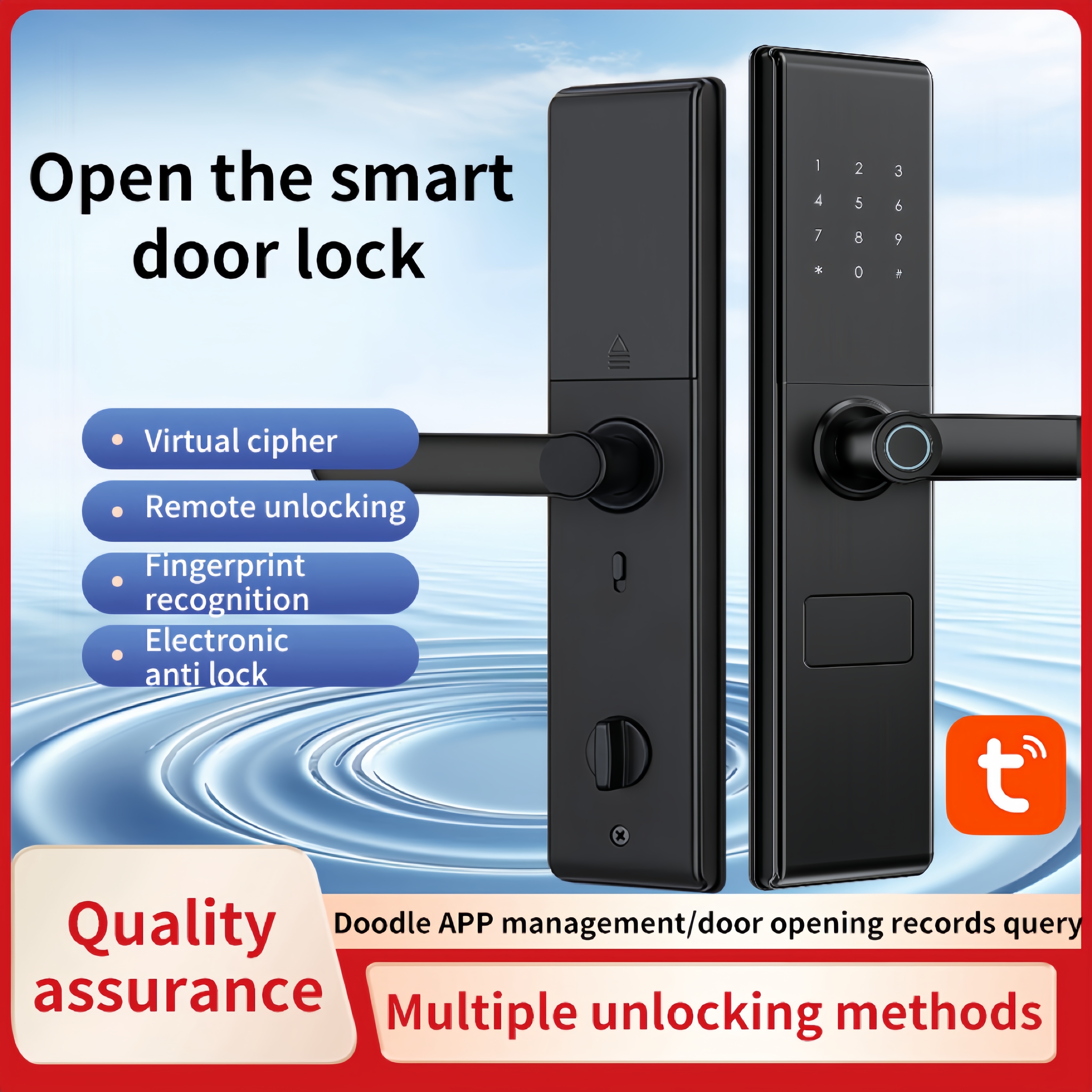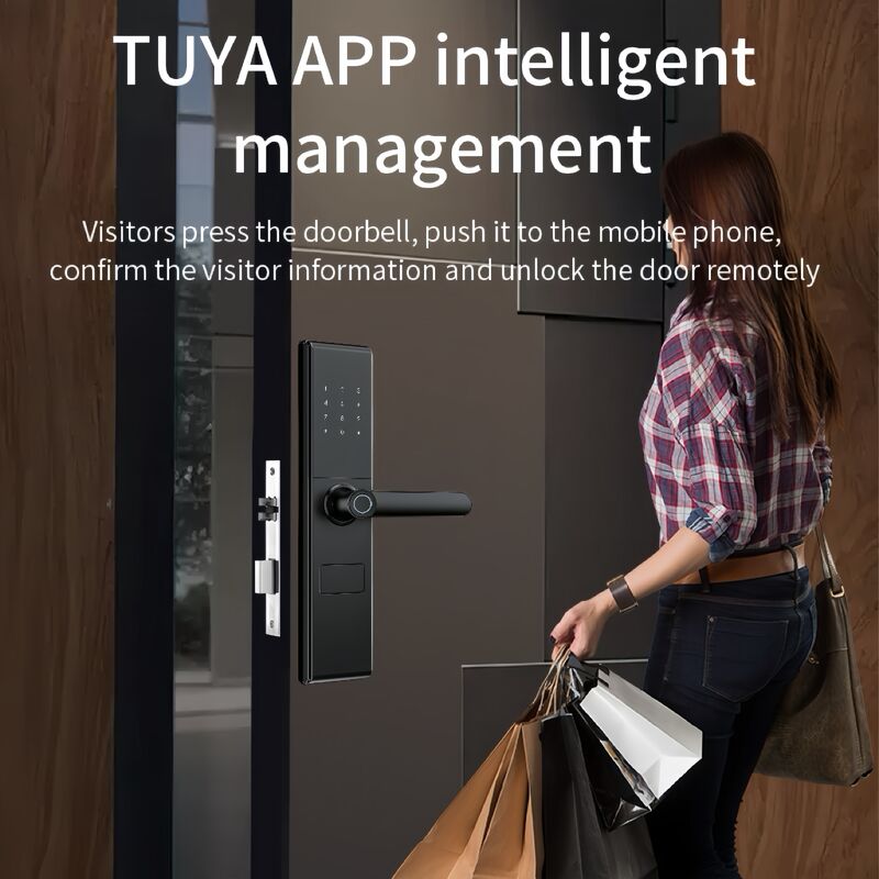 * Múltiplas opções de desbloqueio Suporta impressão digital, senha, cartão de chave, chave mecânica e controle remoto do Tuya App.