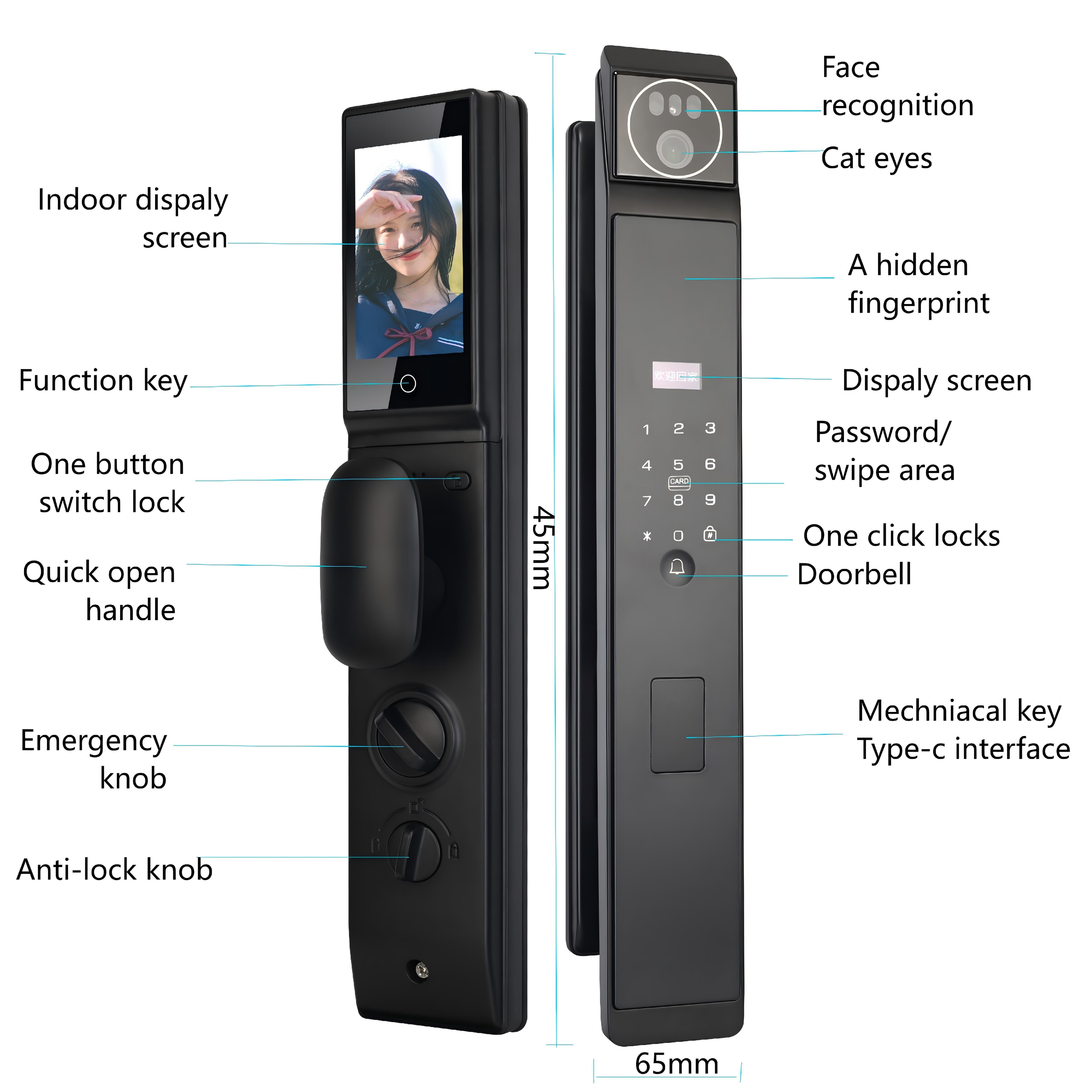 | Destacar: | Fully Automatic Lock Smart Door Lock,3D Face Recognition Face Recognition Door Lock,Palm Vein Unlock Tuya Smart Lock |